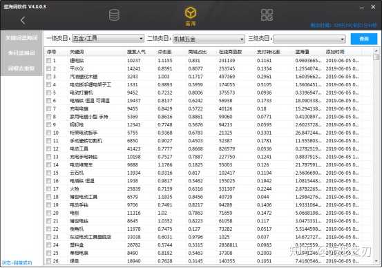 勾选六个指标来进行判断:搜索人气(人气高的可以做)、点击率和支付转化率(只要不过低就可以做)、在线商品数(在线商品数少的可以做)、商城占比(如果是c店,那么商城点击占比低于50%是最好)。