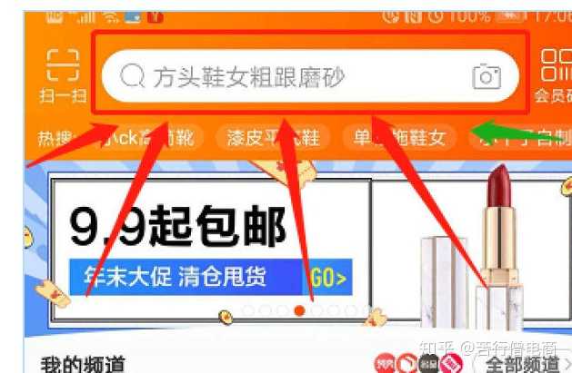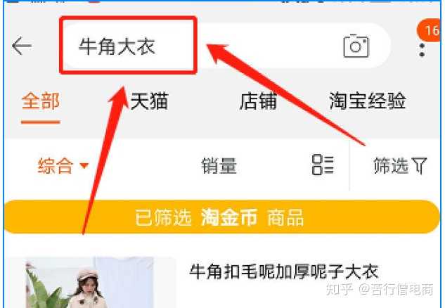 (1)首先,直接在淘宝首页搜索关键词。这里注意,淘宝首页搜索框搜,而不是淘金币搜索框,注意区别点。