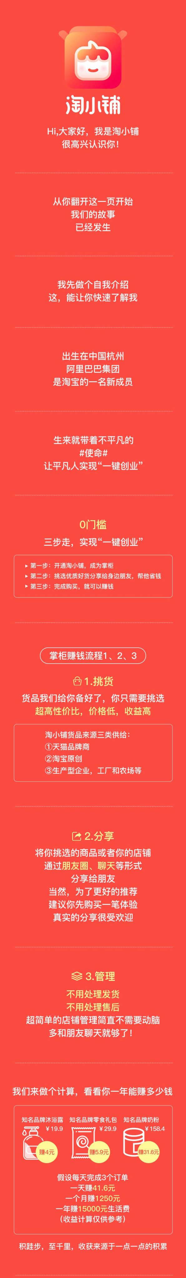 淘小铺上线的初衷就是实现平凡人的一键创业,降低传统电商的门槛,对于草根儿来讲,再适合不过了!