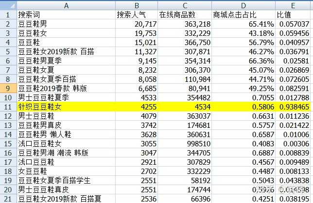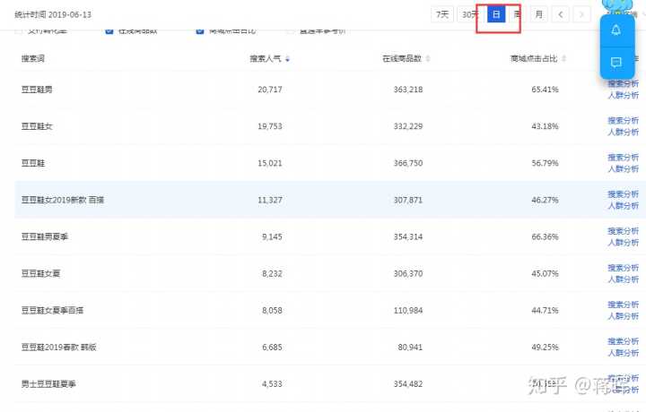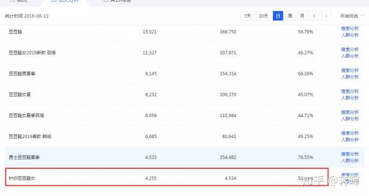 这需要借助到生意参谋,比如你想卖豆豆鞋,通过“生意参谋-市场-搜索分析”,输入“豆豆鞋”,然后按照搜索排名,注意这里是一天的数据。(会更加精准)