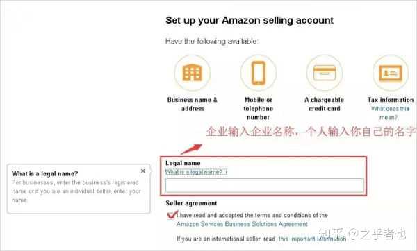如果是企业就输入企业的名称,如果是个人的话就输入个人的名称,然后同意亚马逊的条款。