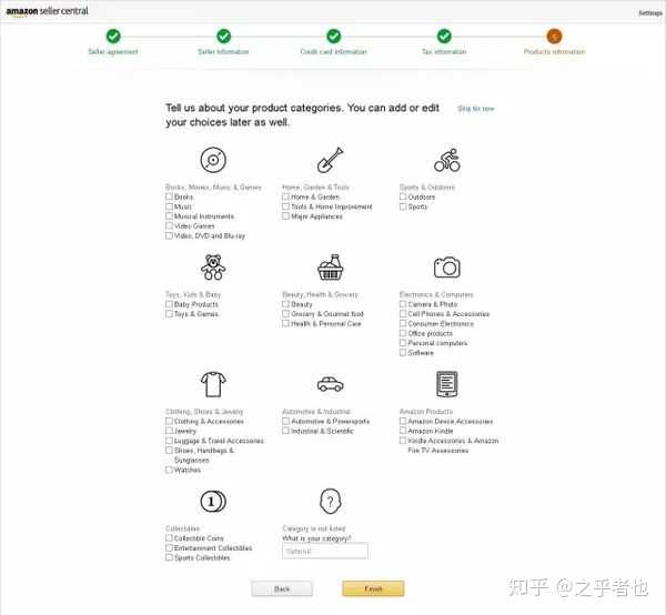 此处是多选项,如果你卖多品类的话,可以都勾选上,最后点击Finish。