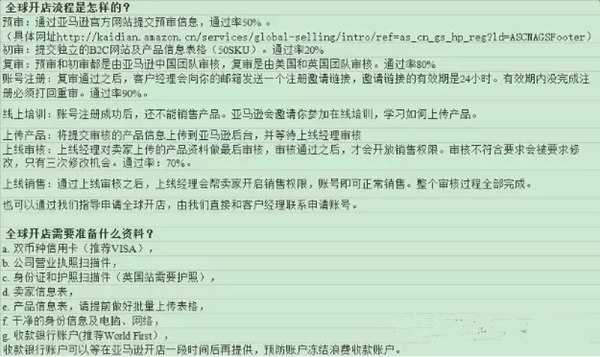 需要审核公司(包括大陆公司以及港澳台公司,全球开店只接受企业入驻)和其他一些内容。