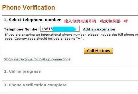 输入电话号码。点击“call me now” 会有美国致电验证PIN