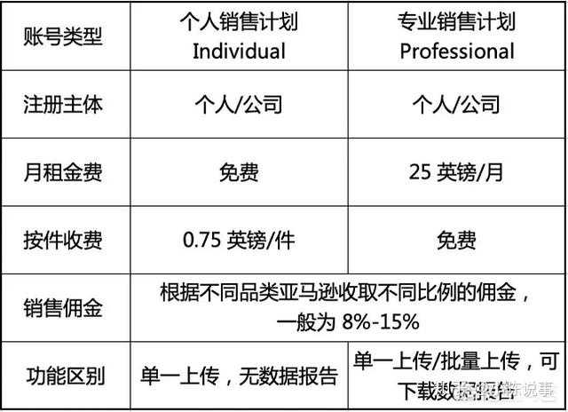亚马逊账户类型分为“专业销售计划”和“个人销售计划”两种,无论您是公司还是个人,都可通过全球开店完成账户注册并开始销售。两种计划的主要区别在于费用结构和功能使用权限上。