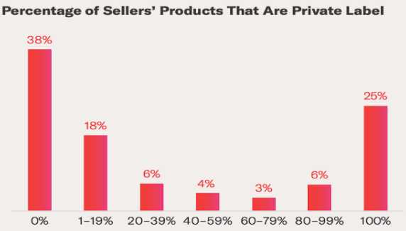 自有品牌产品为销售商提供了潜在的利润空间,他们能够以自己独特的品牌名称生产的产品。报告称,38%接受调查的亚马逊卖家没有自有品牌产品,而在自有品牌卖家占比为62%。自有品牌拥有唯一的Amazon标准标识号(ASINs),因此能赢得购物车,保持竞争优势。