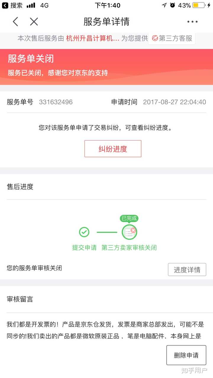 遗憾的是,商家并没有寄来发票,于是在收到surface pen后申请退货,商家拒绝了并且对于发票百般狡辩,如图2,3