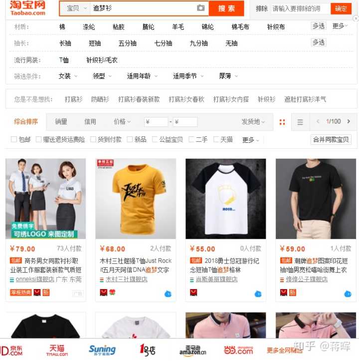 一是在淘宝搜索框中进行搜索,搜出的产品与追梦衫并不符合,