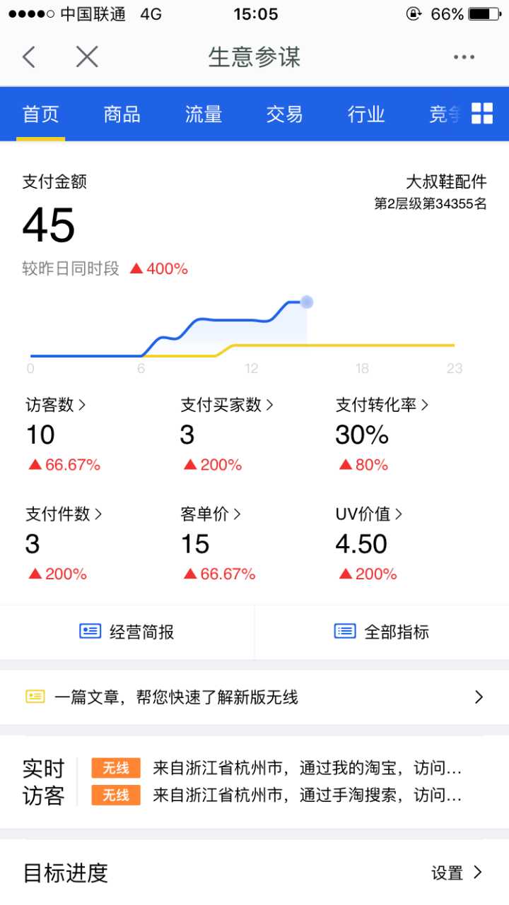 大叔鞋配件,店铺很久就注册了。一直没正式运营!刚好我是电子商务专业毕业!算是对口吧,我的第一单是不到5天进来的单子!后续每天都有单子,难道运气爆棚了! 让女朋友刷了一单,写了个好评带图,最近一天接了3单!但是客单价低所以基本上赚的钱也没啥用。