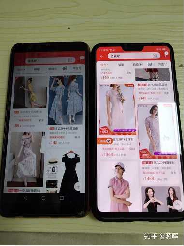 我用两部手机,搜索同一个关键词“连衣裙”,搜索出来的产品是不同的。