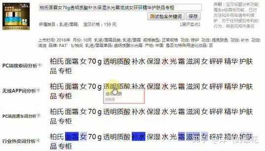 比如下图这个产品标题上面的透明质酸,这个词在无线端是没有流量的,我们就可以进行优化。