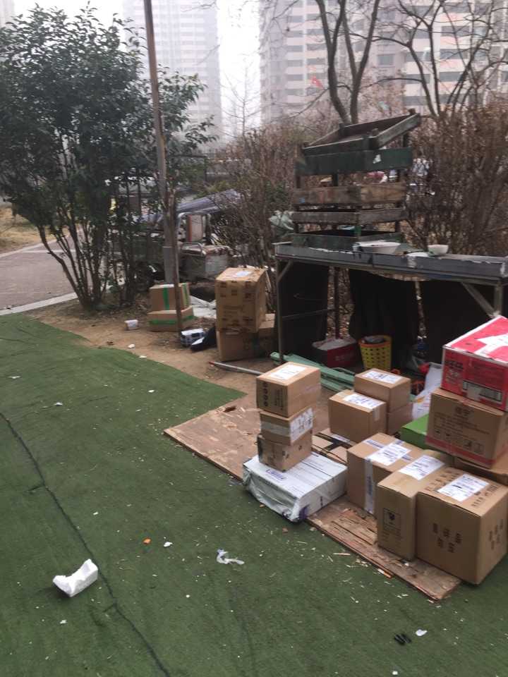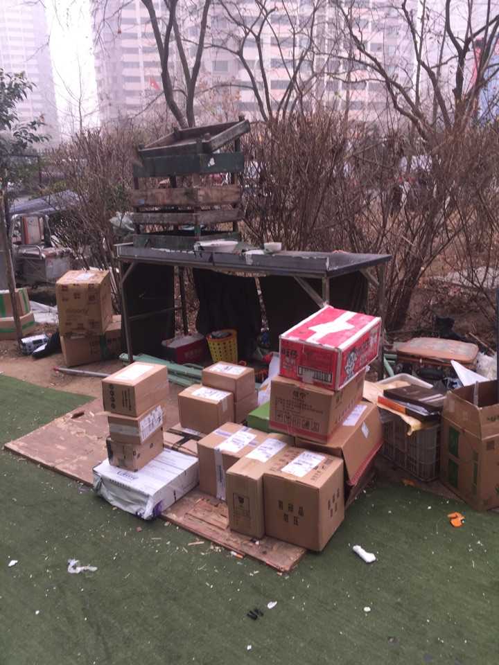 这是某中端+楼盘中的纯驿站(除了驿站无其它业务那种),就这样露天堆放,可见阿里对加盟商的要求之低。