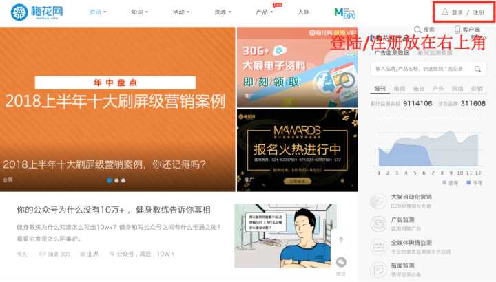 5.登陆/注册按钮放在页面的右上角