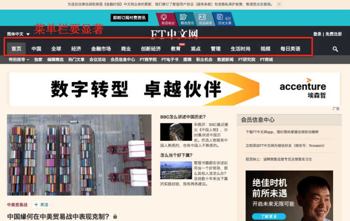 1.菜单栏要显而易见