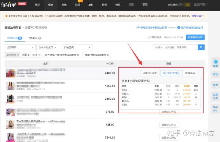 首先,了解什么是【SKU打折】功能: SKU(规格)级别的促销打折功能。该功能可以对单个宝贝中的多个SKU分别设置不同的折扣/减价,可以更好地刺激用户购买,并满足更多场景的需求,适合SKU较多的店铺使用。