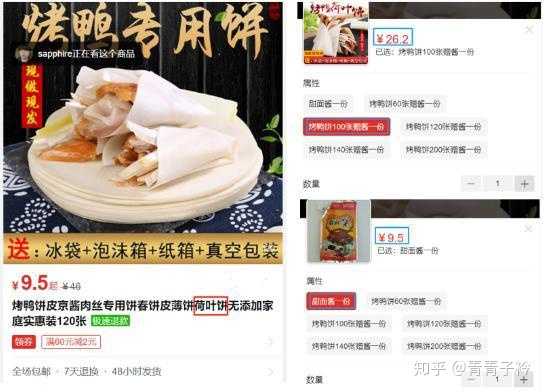 如图,标题和主轮播图均显示售卖商品是烤鸭饼,但SKU中与标题最低价9.5元一样的是烤鸭饼的甜面酱,而不是标题中承诺的烤鸭饼。