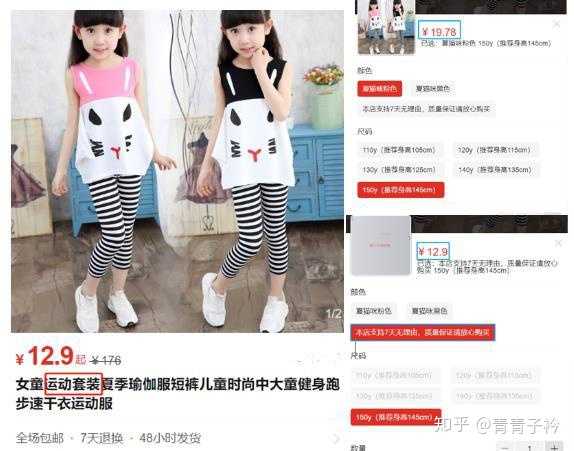 从商品的标题和主轮播图中我们烟台拼多多网店托管可以得知售卖的是女童运动套装,但SKU中却出现与该服饰不相关的SKU,且价格为标题最低价12.9元,而套装实际需要19.78元。