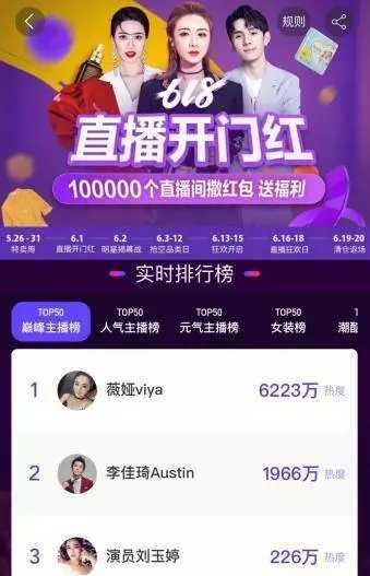 在这其中,淘宝直播无疑是跑出来的一匹黑马。根据阿里财报数据,在2018自然年期间淘宝直播产生总GMV为1000亿元,产生交易量占平台总GMV的2.1%。阿里方面也表示,淘宝直播在3年内要冲刺5000亿GMV。诞生于此的李佳琦、薇娅等红人,也是通过淘宝直播证明了自己的带货能力。以薇娅为例,在2018年天猫双11期间,她拿下两小时卖货2.67亿元、全天3.3亿元的战绩;而2018年全年,仅仅薇娅这一个小直播间,就创造了27亿交易额的“奇迹”。