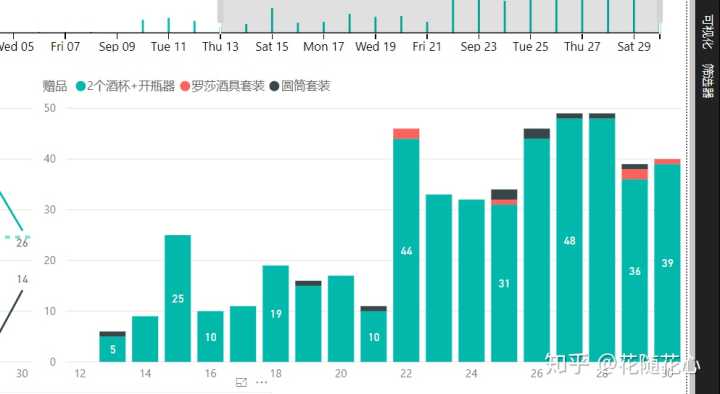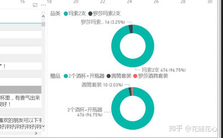 最后,两个占比图,非常到位的显示出具体的品类和赠品分布情况,方便我们自己日常在做促销的时候,有所依据。