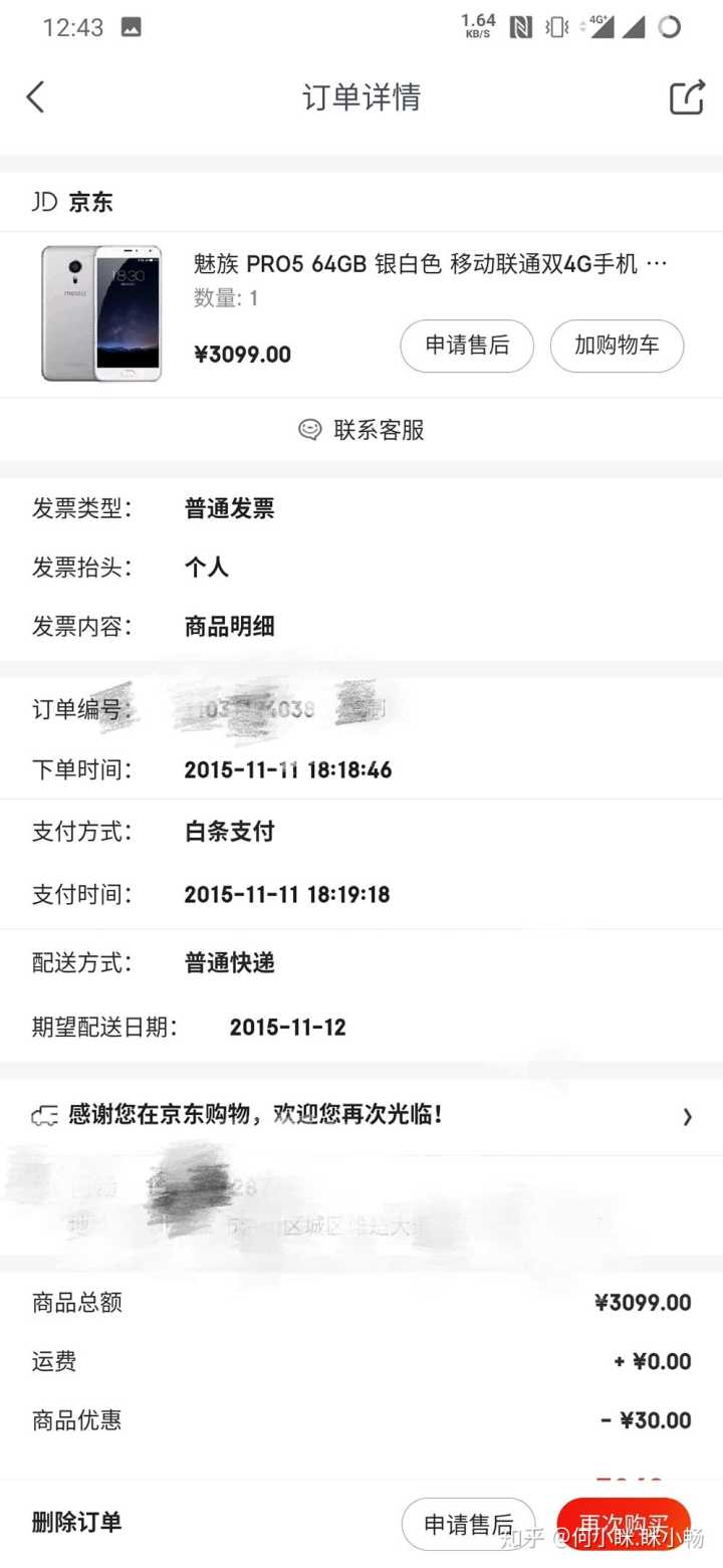 6. 2015年11月11日开始第一次用白条。然后后面就基本上买电子设备都用白条了。不过2018年中白条算小额贷款计入征信系统,基本上就再也没有用过了。因为不想让银行认为我买个手机都要贷款而认为我穷的叮当响…(虽然穷的一批…)。