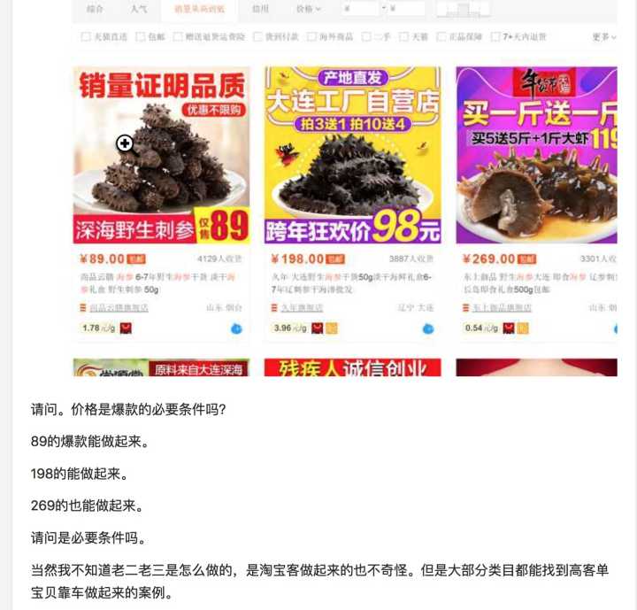 我第一89,第二98 第三非干海参(即食海参两斤装,我的是50g干海参,两种东西)