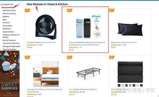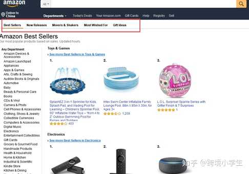 通过亚马逊官方的Best sellers,在你熟悉的类目里面获得产品思路,这也是目前最多卖家在使用的方法。由于亚马逊有科学的产品分类,很容易在里面发现你感兴趣细分领域的产品。