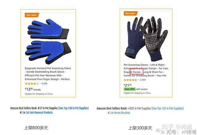 图中的两只手套都是给动物刷毛的手套,现在都是bestseller,这里我想跟大家强调的是,第二个卖家在第一个卖家上线一年多之后且已经有大批量类似商品入市的情况下,仍然选择了这款商品,而是做了产品功能的添加和修改,之前是给狗和猫的,现在卖家增加了给马梳毛的功能,同样也成了bestseller,某种角度我觉的第二个卖家更成功,我们可以看一下价格,几乎是第一个卖家的两倍,利润可想而知,所以说不要给自己过多的局限,多动动脑,如果我们想做一个东西,就要仔细的去研究它去盘它才行!