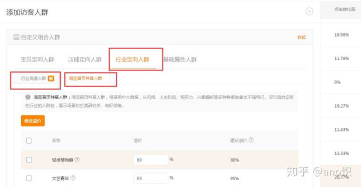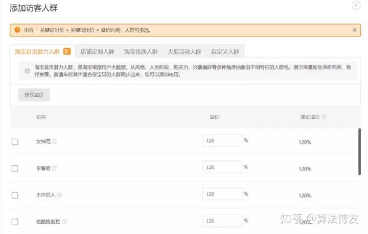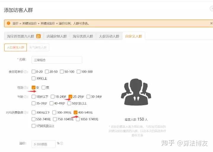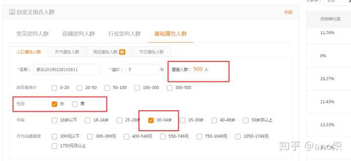 在测试这些人群时,刚开始溢价可以设置为30-50%,每个小时观察一次,没有展现可以增加5%的溢价。