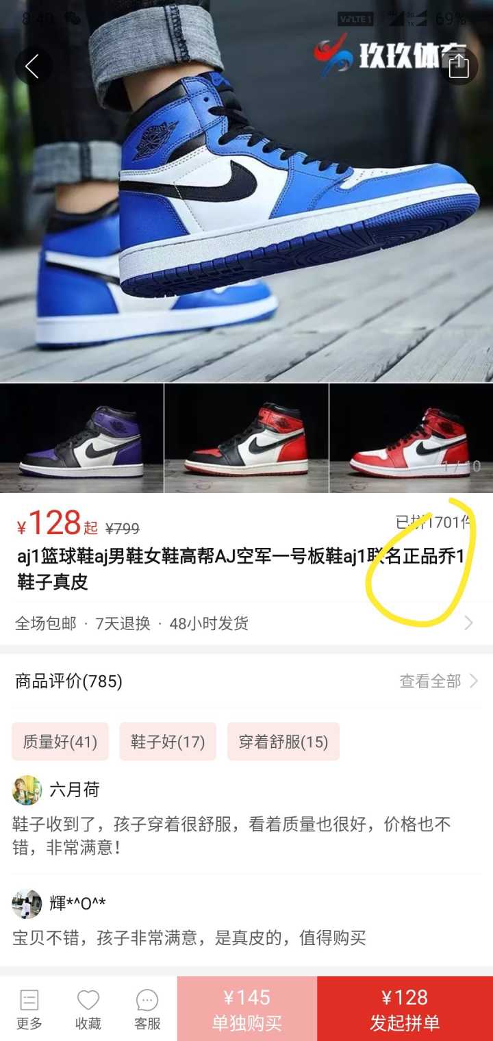 说远了,扯回来。而咱拼多多,说实话,我前几个月还在朋友圈看到朋友截图拿拼多多售价只需一百二十八还声称正品的AJ1开玩笑