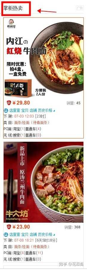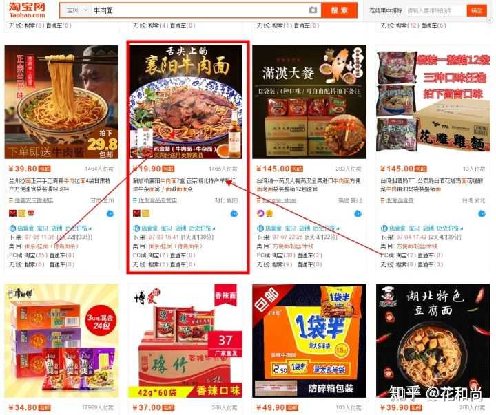 设身处地的设想一下,就比如说我们现在想要去买一个“牛肉面”,打开淘宝搜索“牛肉面”,看到以下产品,我们首先会选择点击哪个产品?