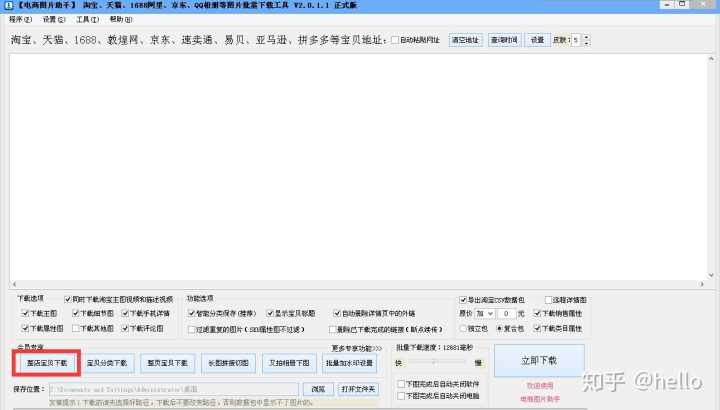 只要在软件中输入了淘宝店铺宝贝的链接,就可以批量一键下载淘宝商品的图片、数据包和视频。