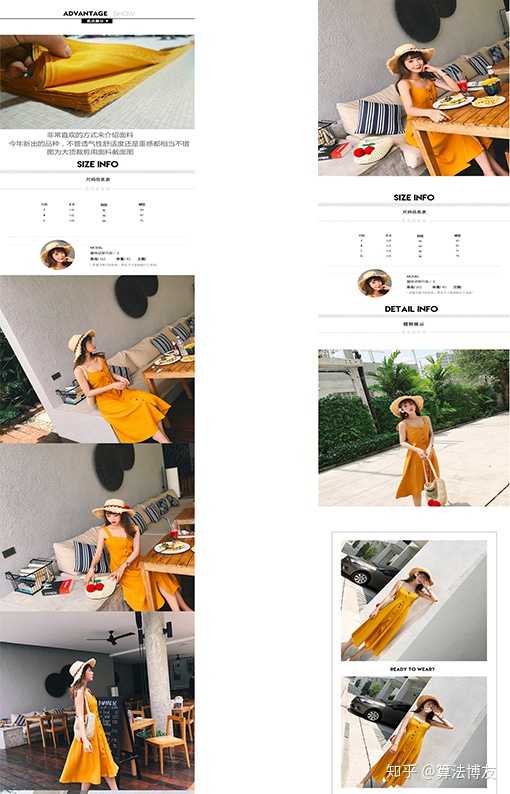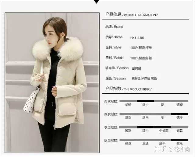 先做一个服装类买家浏览详情页的习惯分析,一般买家会着重去看模特展示、尺码表、商品属性、材质、做工、商品细节、性能等。