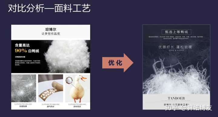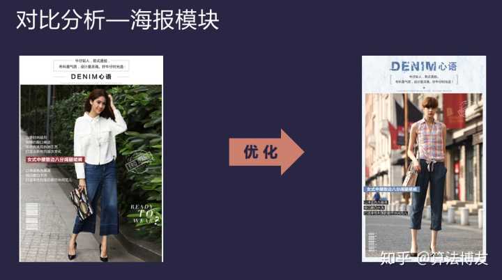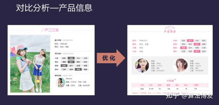 以上模块排布顺序需要根据目标客户、商品风格和店铺定位综合确定,这里不再赘述。需要注意的是,单一模块的设计排版也有很多学问,下面展示一组模块优化前后的视觉对比分析: