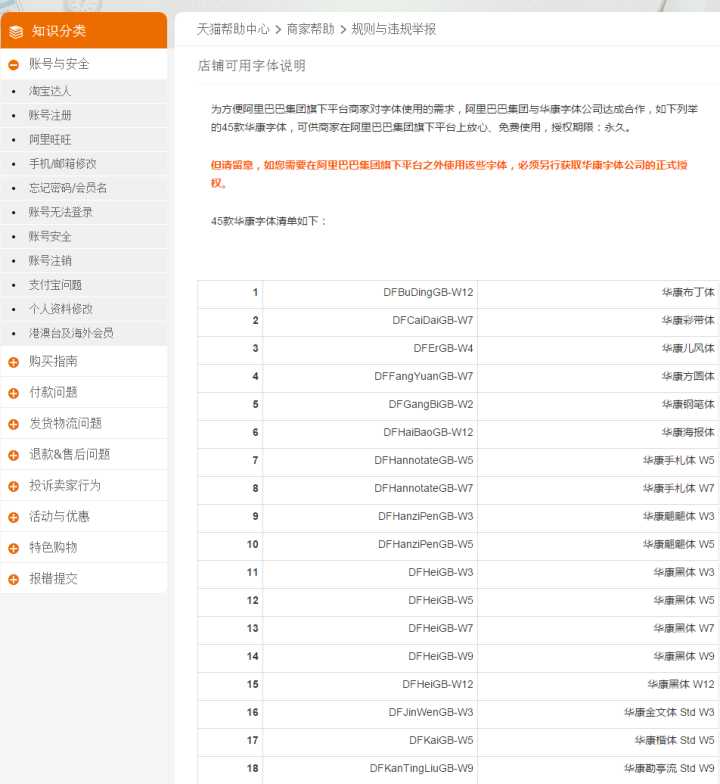 华康字体可以用,但并不是全部。天猫通知原文如下: