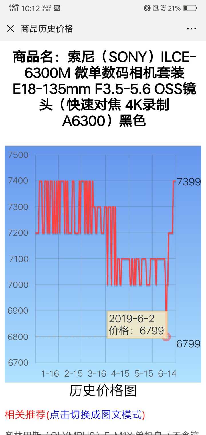 6月2日索尼A6300微单6799元,现在7399元,并且保价618,也就是说618比平时还要贵600元。