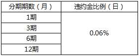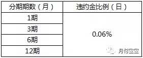 违约金=当前应还本金(全部应还未还本金)*违约金比例(0.06%)*违约天数