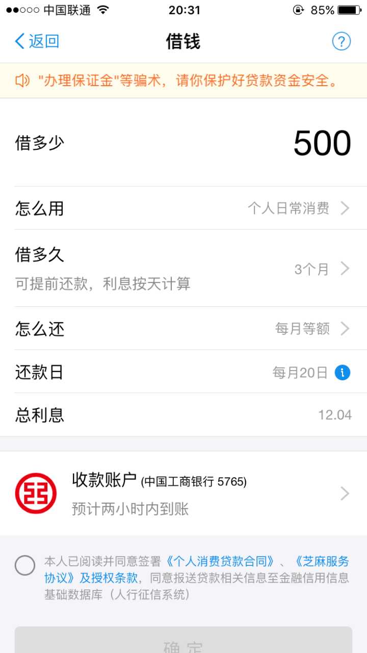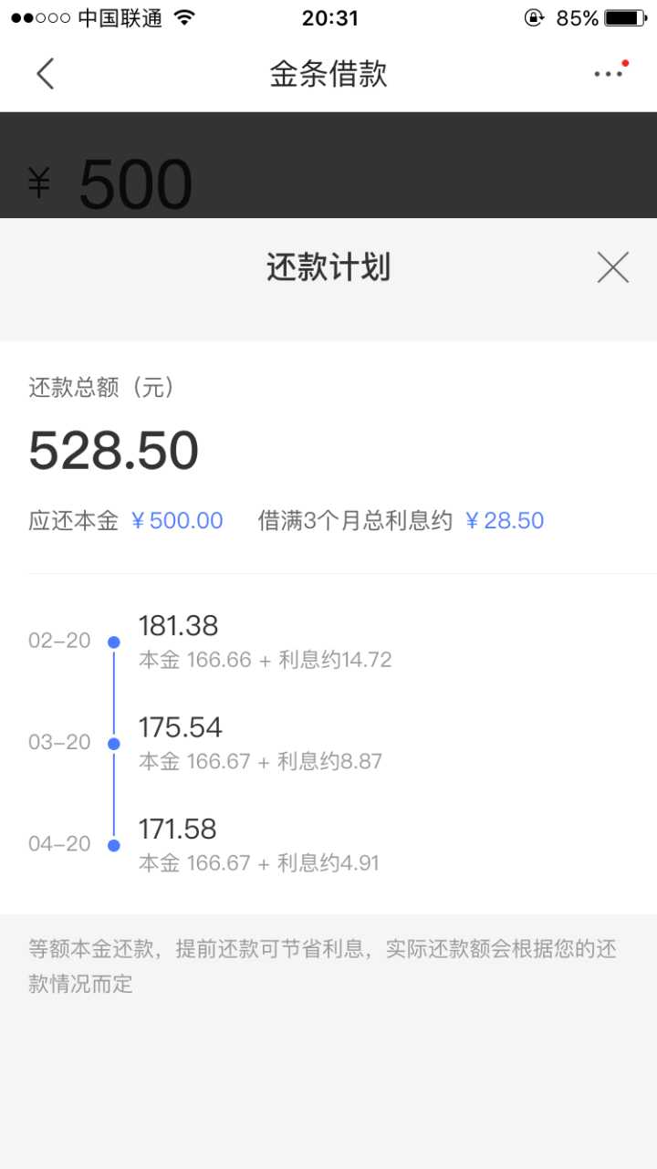 写文章之前,我特地去京东金条和蚂蚁借呗分别借了500元。