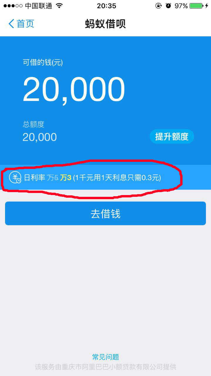 比如月付宝宝蚂蚁借呗的日利率为0.03%,我另一位同事的日利率却是0.05%。