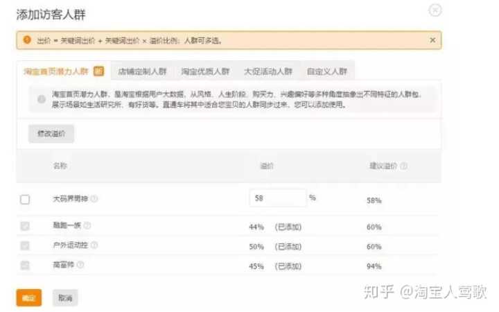 2. 人群投放的精准性 那些优质人群,比如放入购物车的访客,收藏过店铺的访客,浏览未购买的访客,购买过店内商品的访客等,这些是一定要去投放的,这些都是非常精准的。根据实际情况进行溢价设置。