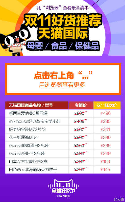 5)电子促销清单。运营将双十一热卖商品折扣信息与购买链整理成了促销手册,方便大家剁手。