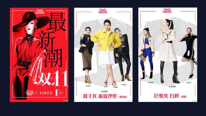 3)展示型H5。天猫与VOGUE跨界合作,带着时尚大咖们,亲自透露穿衣妙方,带着大家买鞋买包买衣服,买买买!