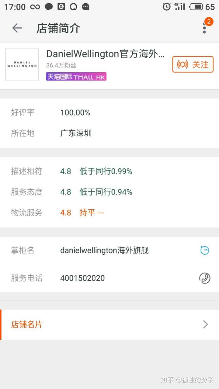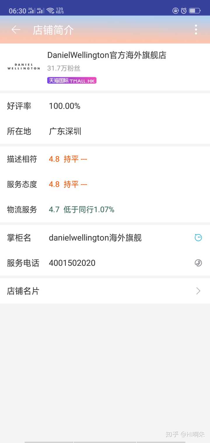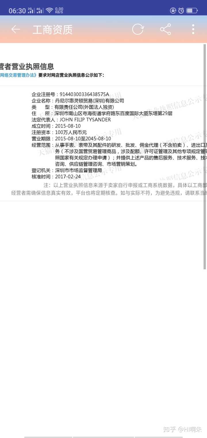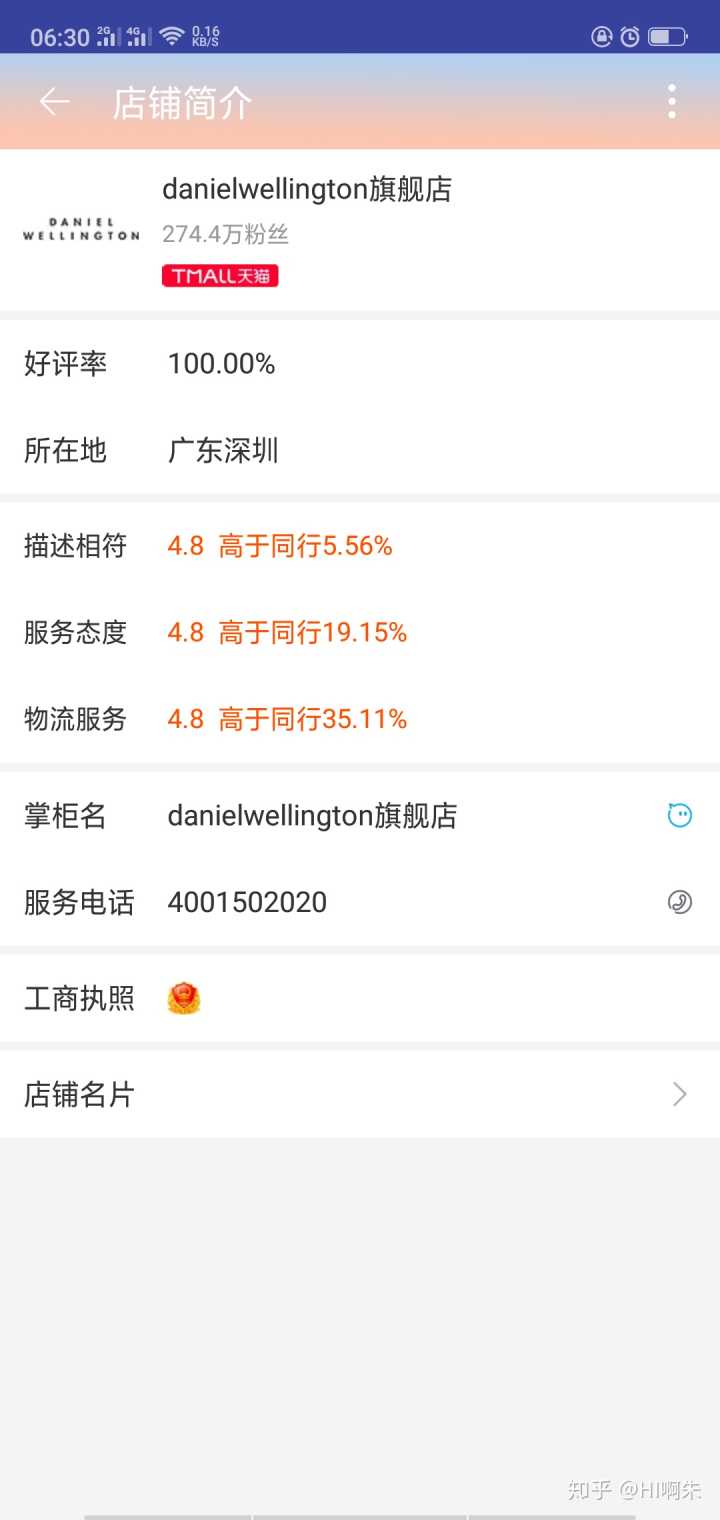 第一个官方旗舰店是能查到工商执照的,并且是有写明了是丹尼尔惠灵顿公司的。第二个海外官方旗舰店就没有工商执照了(好像天猫的海外旗舰店都是没执照的???看了好几间化妆品海外旗舰店也是查不了工商执照),但是所在地、服务电话都是一样的。
