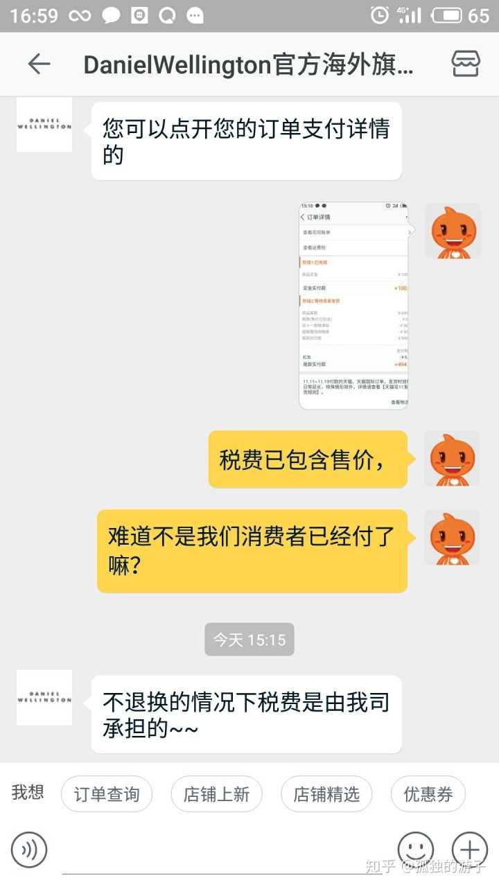 然后我说包装说明书税单什么都有没有,下面是客服的说法,