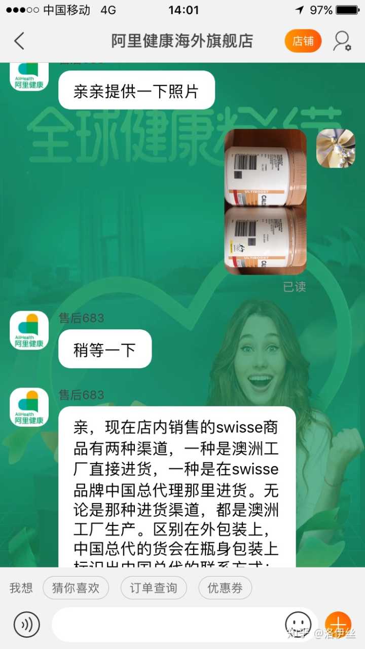客服:好的,您的照片已收到,我们平台对假货是零容忍呢,小二会和商家沟通的