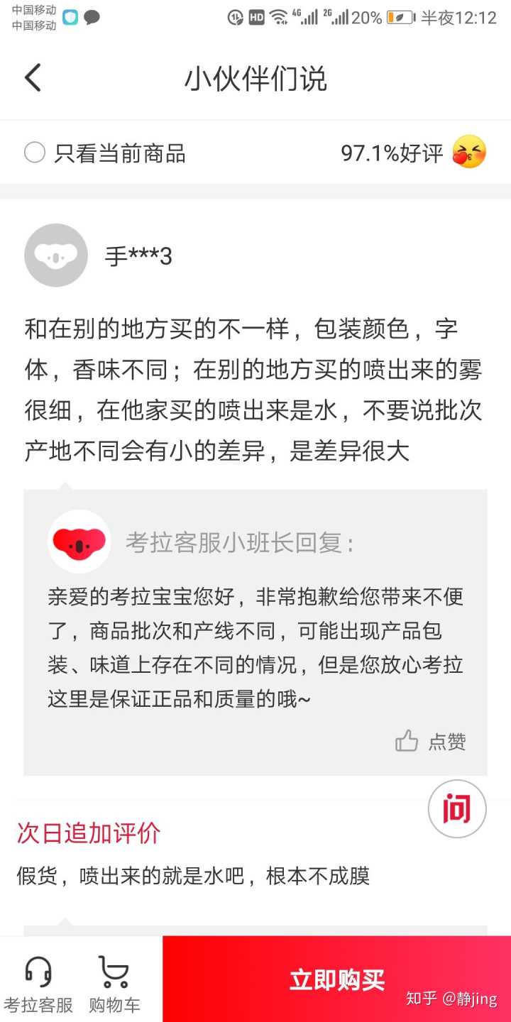 第四,有些产品找靠谱代购就行了,没必要死磕考拉售这个产品的假,淘宝里还是找的到靠谱代购的,至于假代购就别去踩雷了,前人的血不能白流。我个人比较喜欢在接触这个产品的第一次,宁愿买贵也要买到最大可能性的正品,一来,最大可能性体会到正品效果,决定是否回购,二来,之后就可以买淘宝的便宜货,手上有正装做对比和使用感的经验积累,也能降低踩雷的可能性。因为我一直相信一个道理,仿的再像也总是会有蛛丝马迹的,如果真的仿的天衣无缝,算我输,我也没办法。