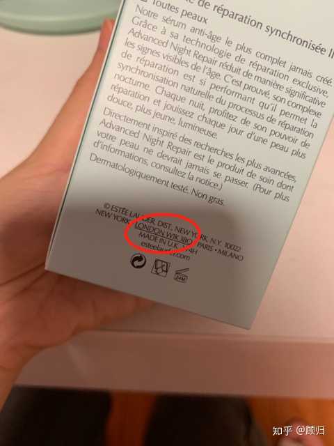 查了一下,应该是雅诗兰黛在英国的两个生产地址,打个比方就是,瓶子和说明书是北京产的,但是盒子是上海的,然后我就马上找考拉的客服询问,结果客服一直跟我装听不懂,翻来覆去就两点