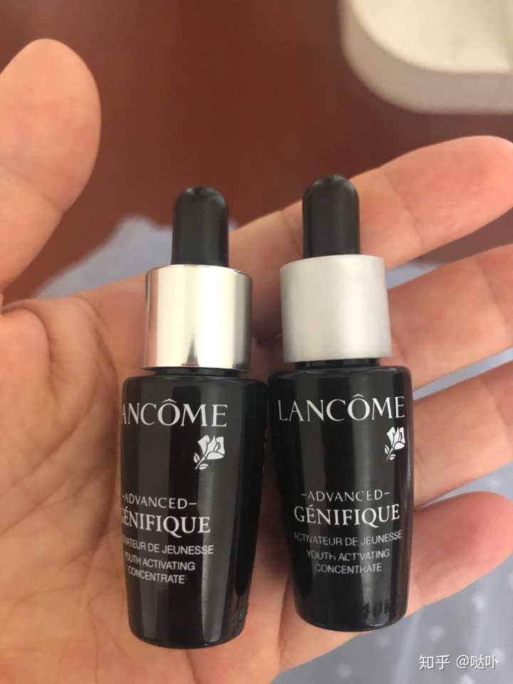 上一张对比图,左边正品,右边考拉上面买的假货。正品的盖子是金属光泽的,工艺很好。假货的盖子是暗灰色的,有注塑痕迹,一看就是小工厂出来的东西。而且假货的字体用指甲抠一抠是会掉的,正品不会。但不得不说这造假工艺确实还行,精华液体跟真的非常像,如果之前没用过小黑瓶,只是在专柜试用一下下的确实很容易被骗。