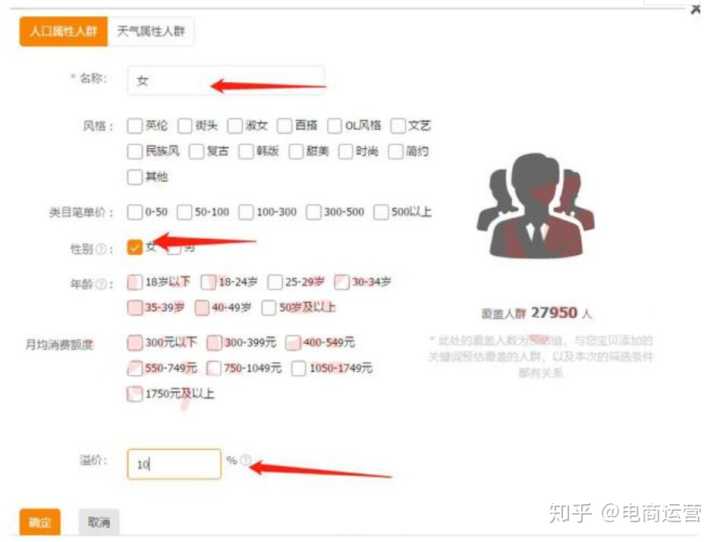 10 人群测试:同步打开自定义人群:从一级人群开始测试。统一溢价10%