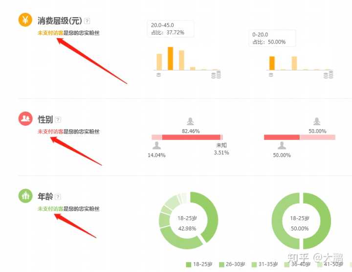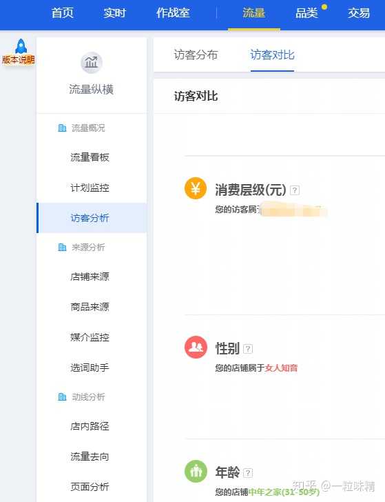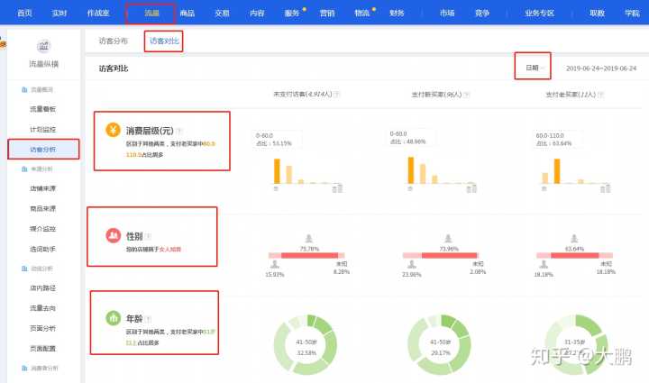 可以通过卖家后台,生意参谋-流量-访客分析-访客对比,可以了解到店铺的消费层级、性别、年龄,以及主要的地域分类人群等。