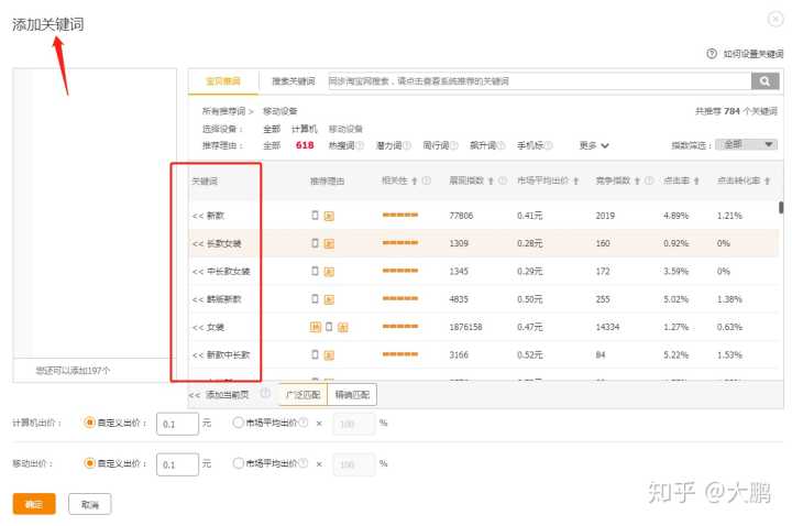 在前期维护基础的时候,加入的关键词尽量先不要选那些系统推荐词,那种词不一定适合你,所以自己一定要多下辛苦,去自己筛选一些适合自己店铺的关键词,有一些好友总是问我,加词的时候,选的词展现要达到多少比较合适?
